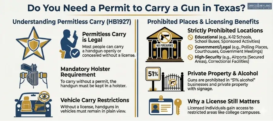 The short answer is no: Texas law no longer requires most people to have a license in order to carry a handgun.